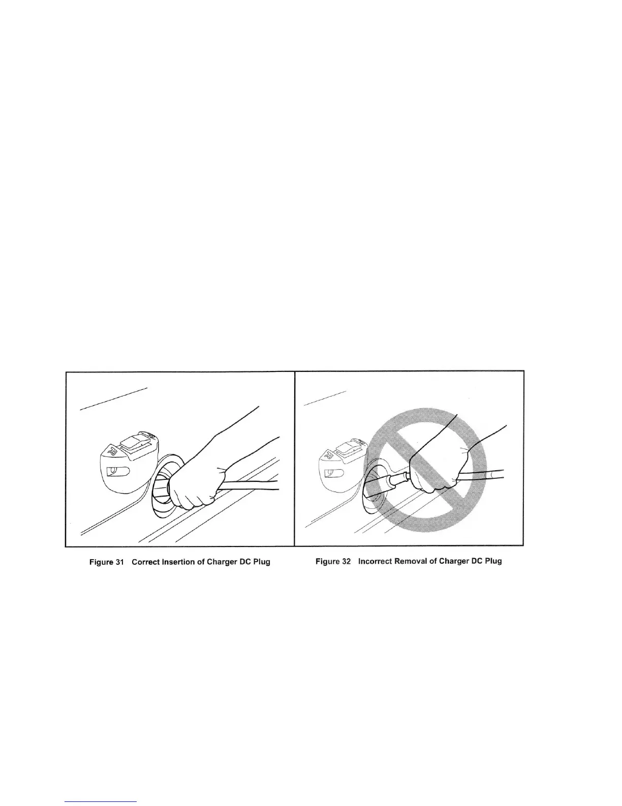 Insert the charger DC plug into the vehicle receptacle. The charger will turn on two to ten seconds later (Figure 31, Page