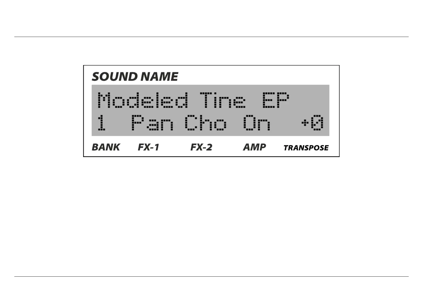 lower part you can see the number of the bank you are now, the status of the FX-1and FX-2 (if they are ON, it will also show the type of