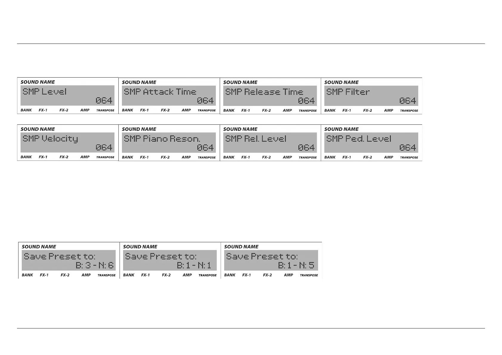4) Sample section (SMP): these are all the settings you can modify for the sampled sounds.