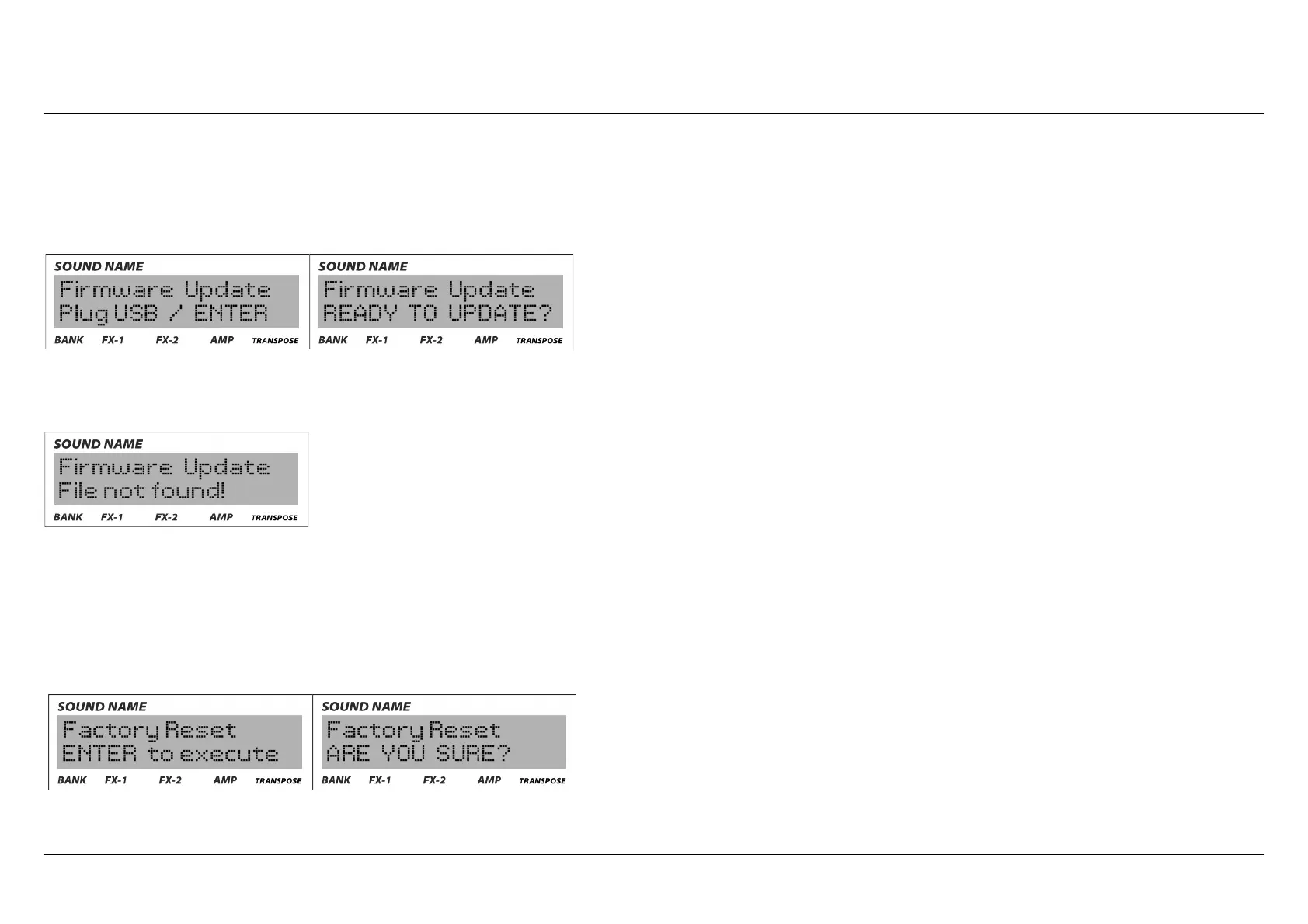 defined preset, setting, expansion installed will be erased. The only exception is the firmware. If you previously installed a new firmware