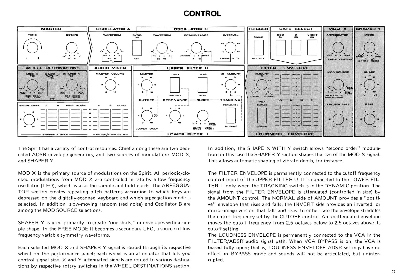 Crumar Spirit - Control System; Modulation and Envelope Controls