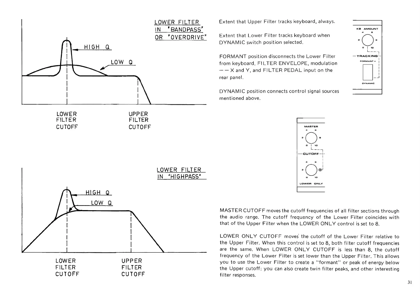 Crumar Spirit - Filter Mode Specifics; Lower Filter Response Modes; Cutoff Frequency Adjustments