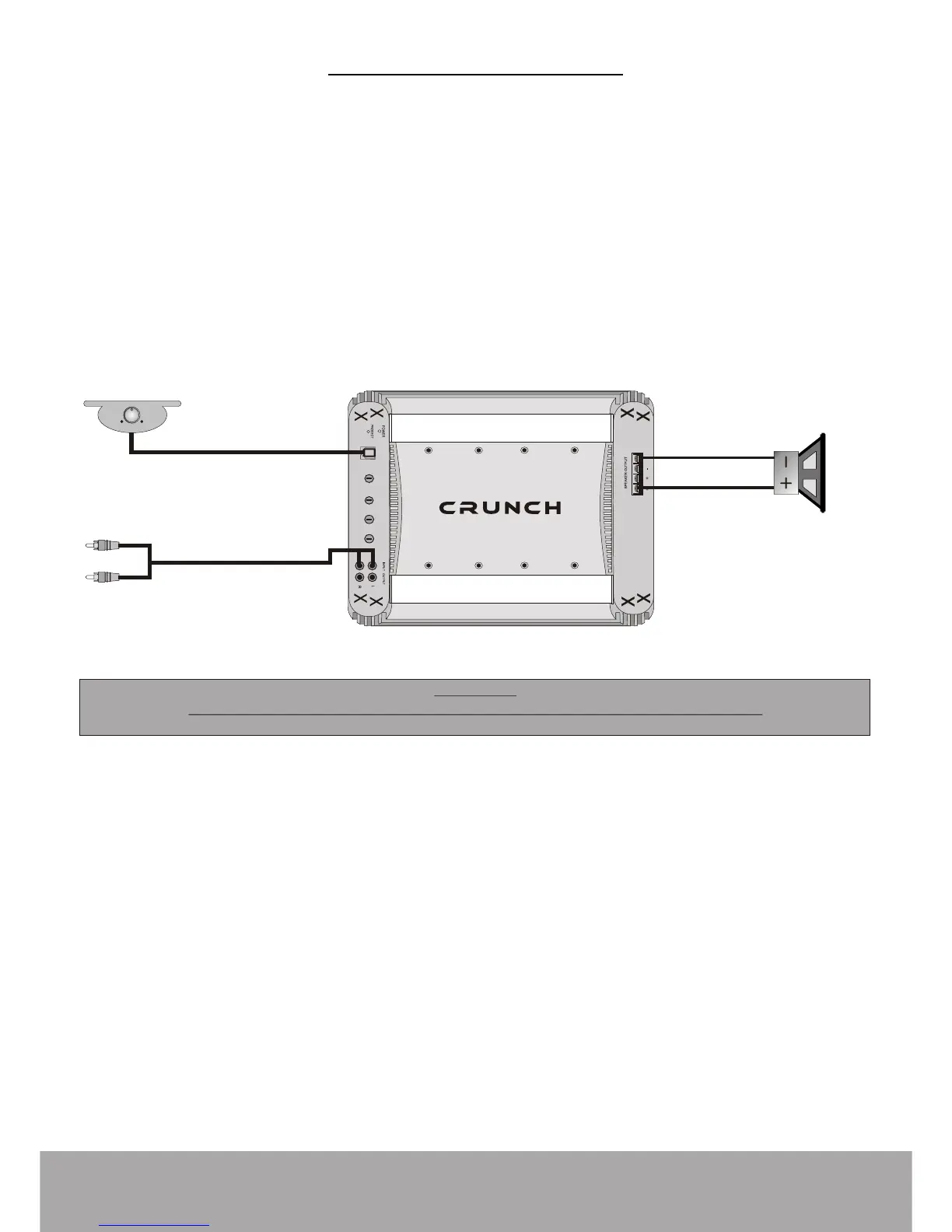 • Connect the INPUT of the amplifier to the head unit line output with good quality RCA to RCA cables.