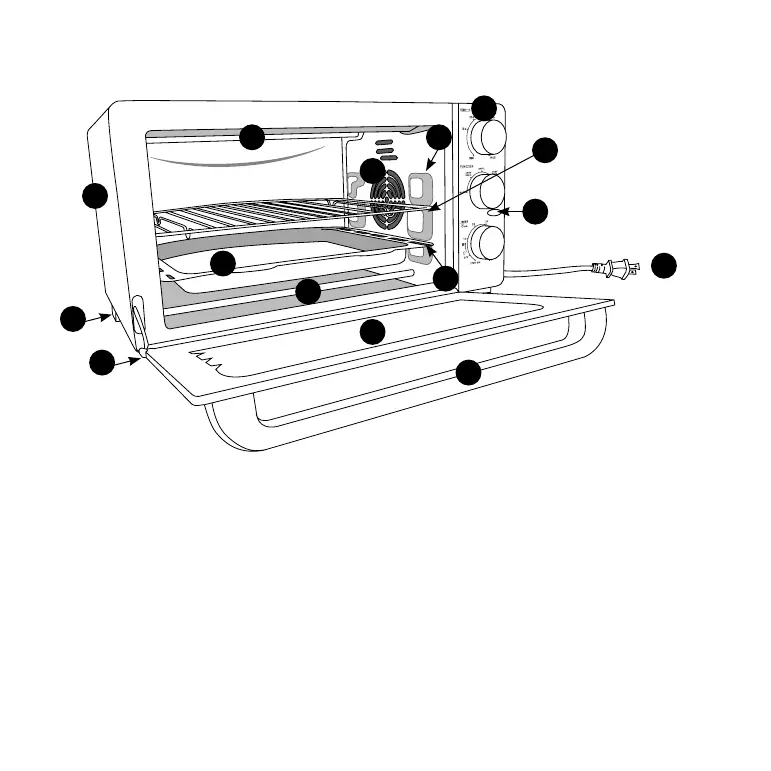 Crux 14543 - Toaster Oven Component Identification; Wire Rack Positions Guide; Power Cord and Polarized Plug; Control Panel Identification