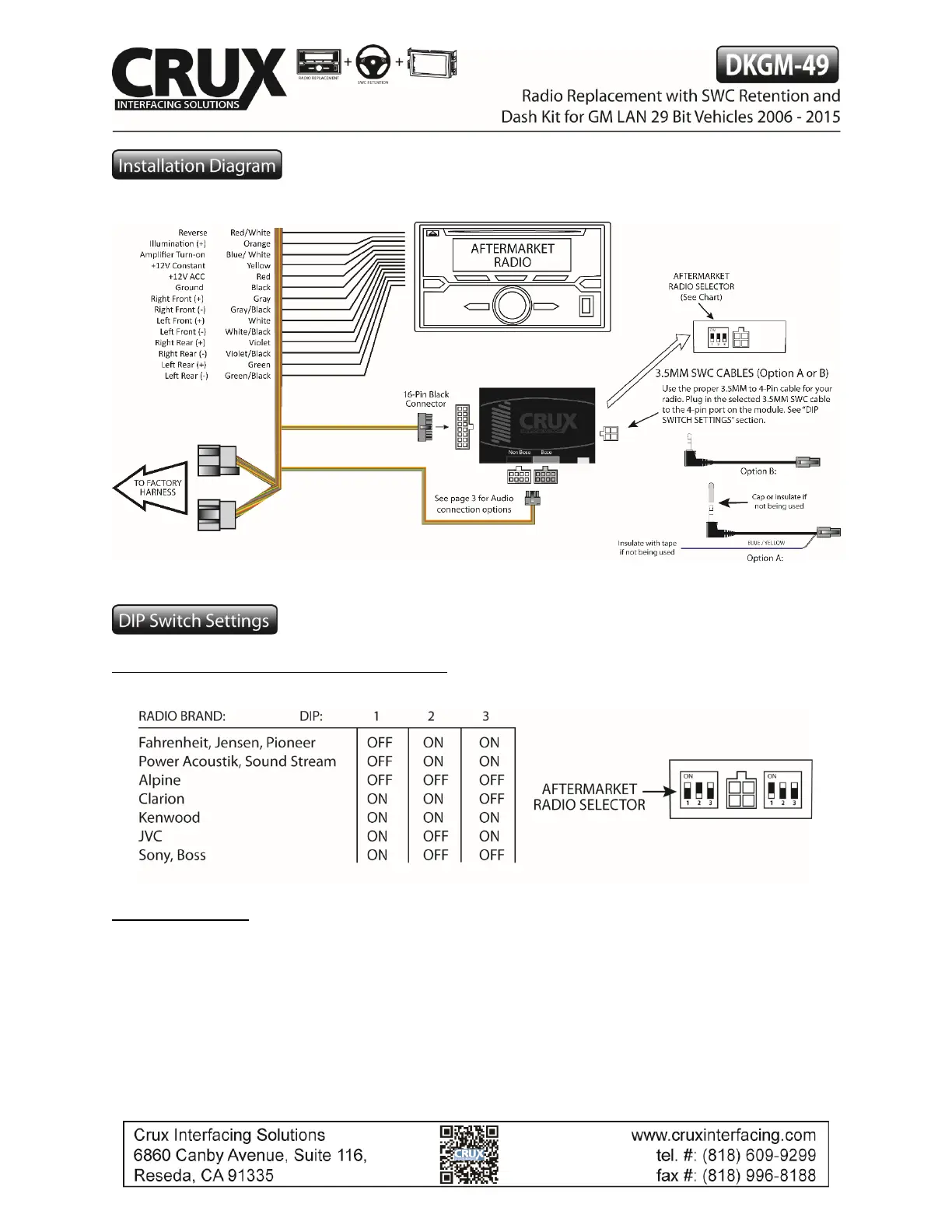 With the key in the off position, set the DIP switches to the corresponding radio listed below.