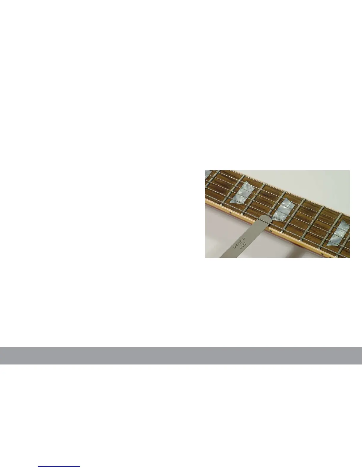 about 0.010,” and 0.015” for basses. You may nd it helpful to check with the next highest and lowest gauges until you get a good feel