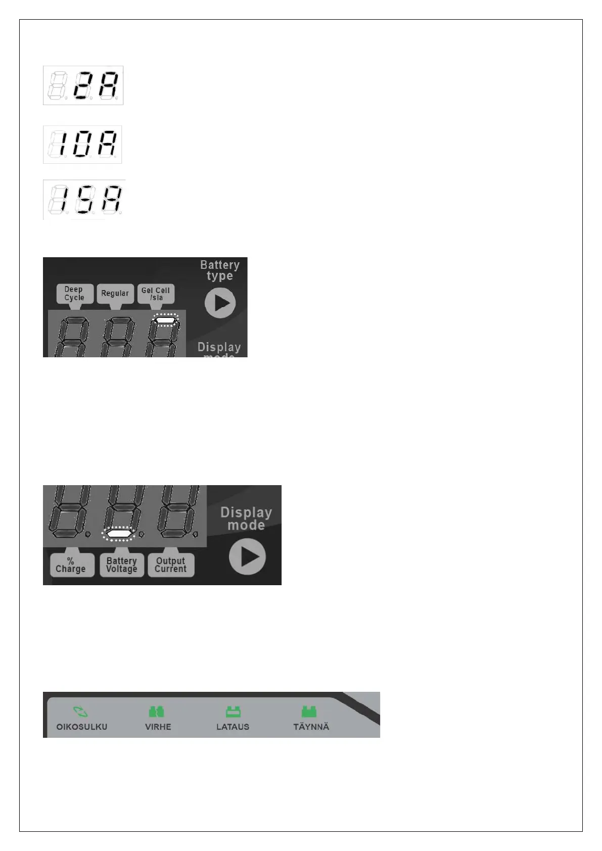 Latausvirtapainike asettaa latausvirran yhdelle seuraavista: