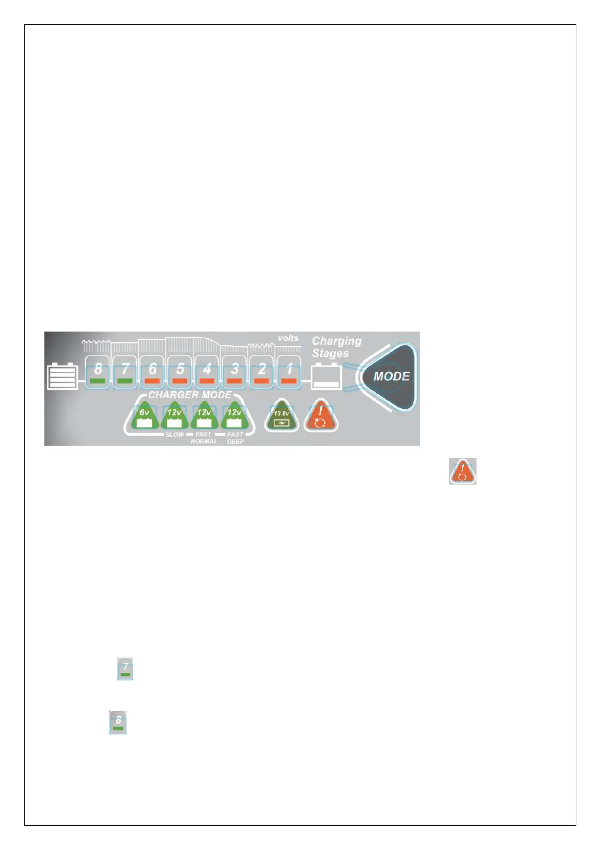 pressed, the charger will immediately go into the 12V DC, Gel Cell battery charging mode.