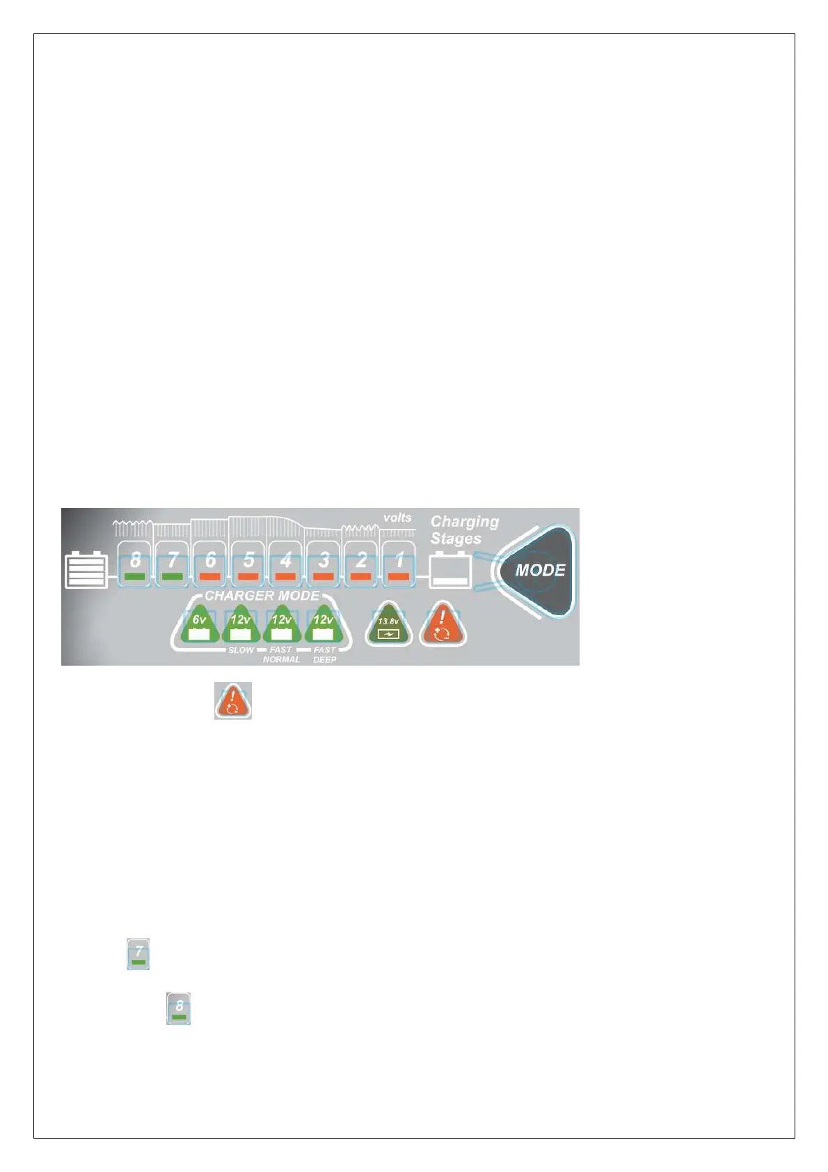 Kun laturi on kytketty verkkovirtaan, se toimii oletusarvoisesti 12V hitaalla latausteholla. Paina MODE-painiketta