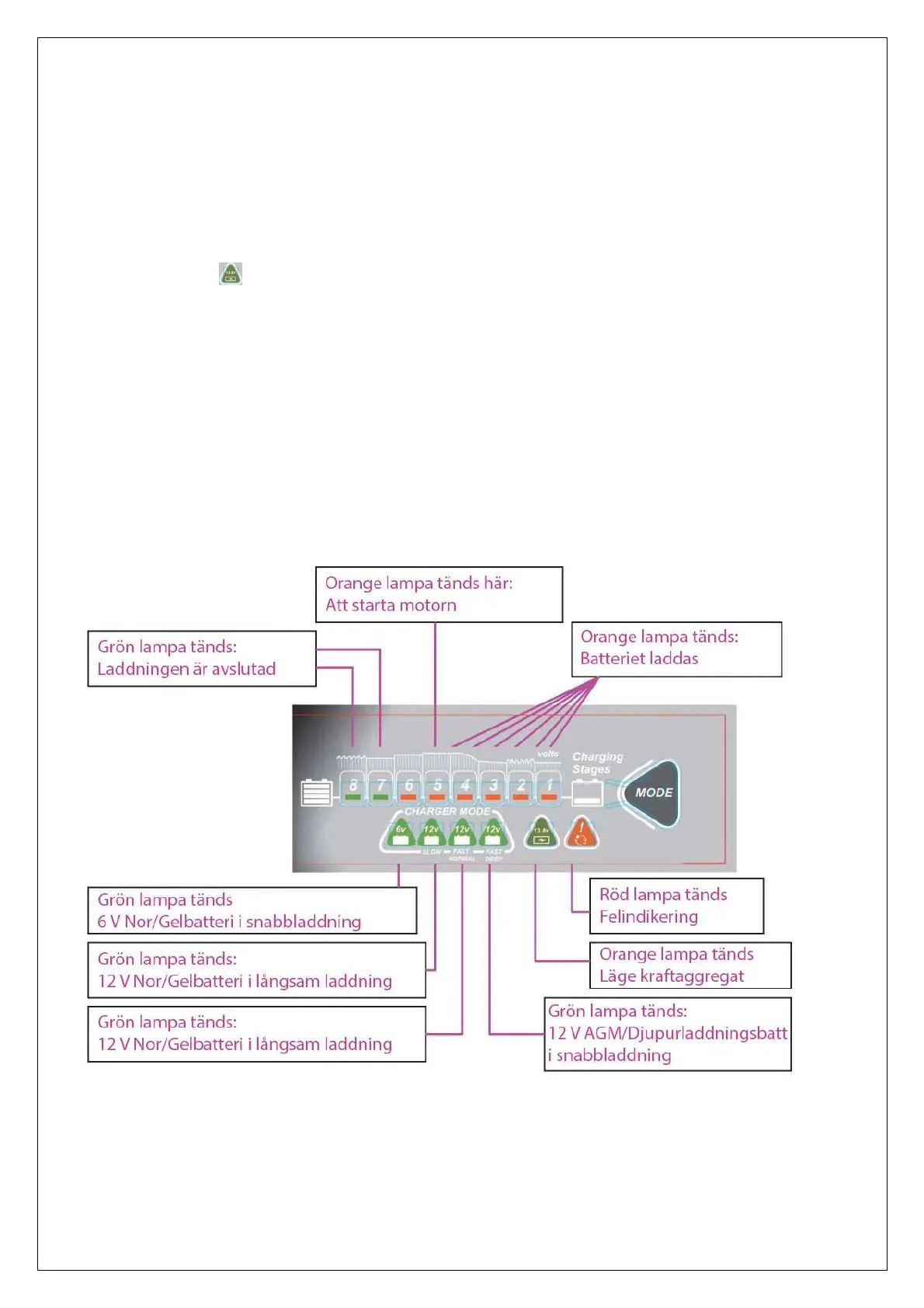 A. Detta läge kan även användas för underhållsladdning av ett redan fulladdat batteri. Denna typ av laddning håller