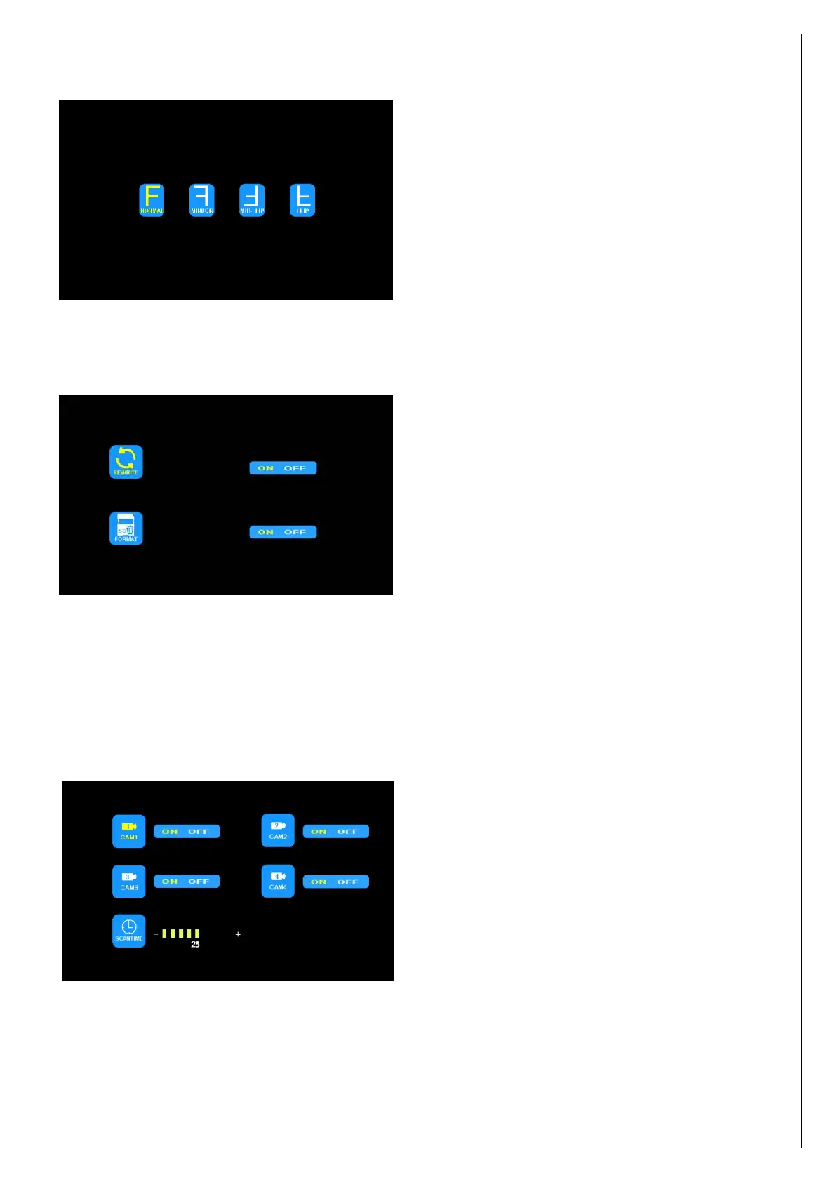 Välj CAM1/CAM2/CAM3/CAM4/BLÄDDRINGSTID med < eller > och OK. När symbolerna blir röda, tryck på < eller >