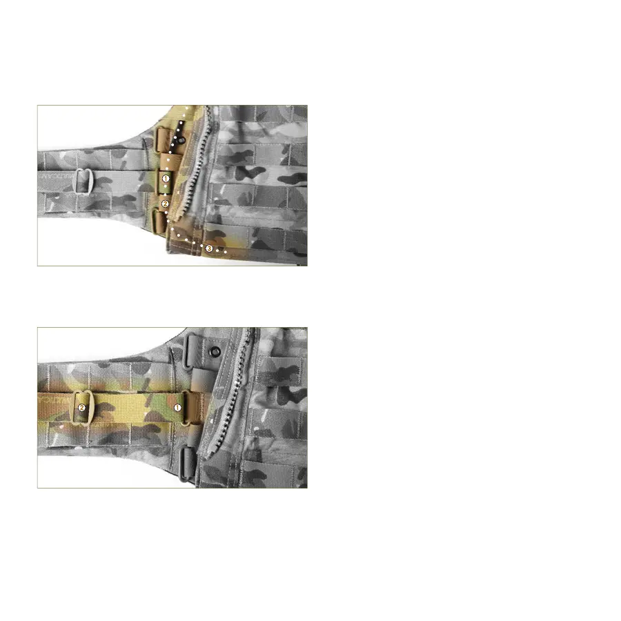 3 Stow excess cable in fabric tunnel on harness under rear platebag.