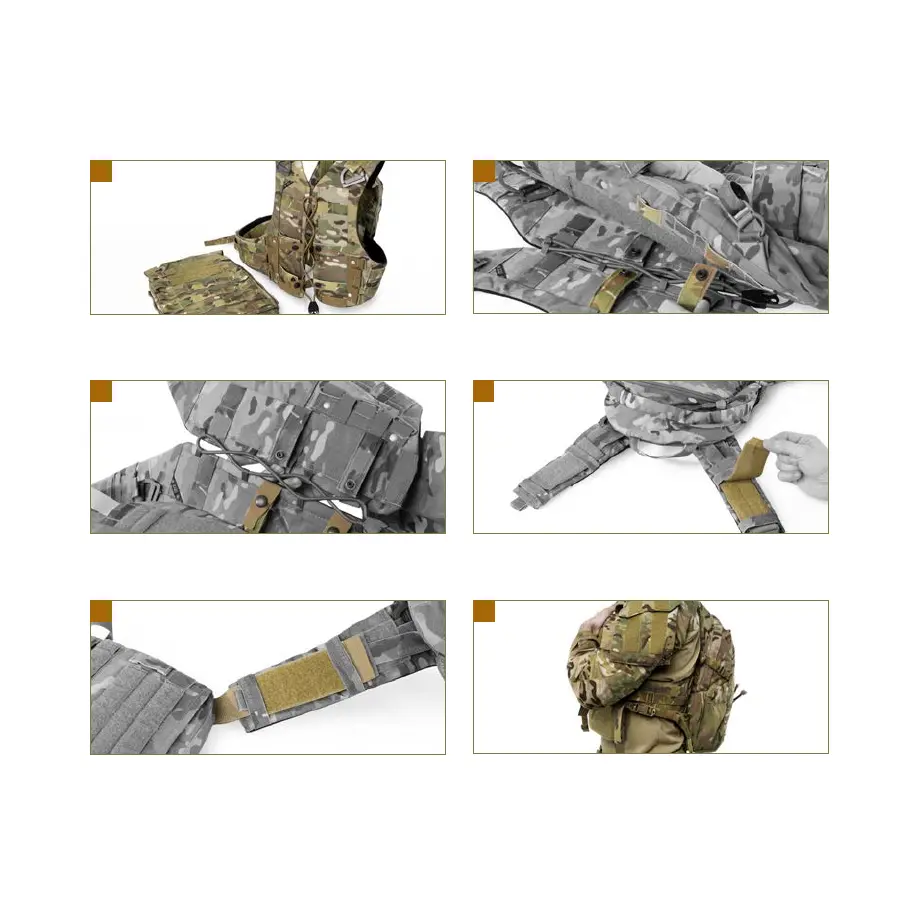 Remove the rear plate bag from the AVS Harness. Pass the AVS tabs through the respective slots located on the