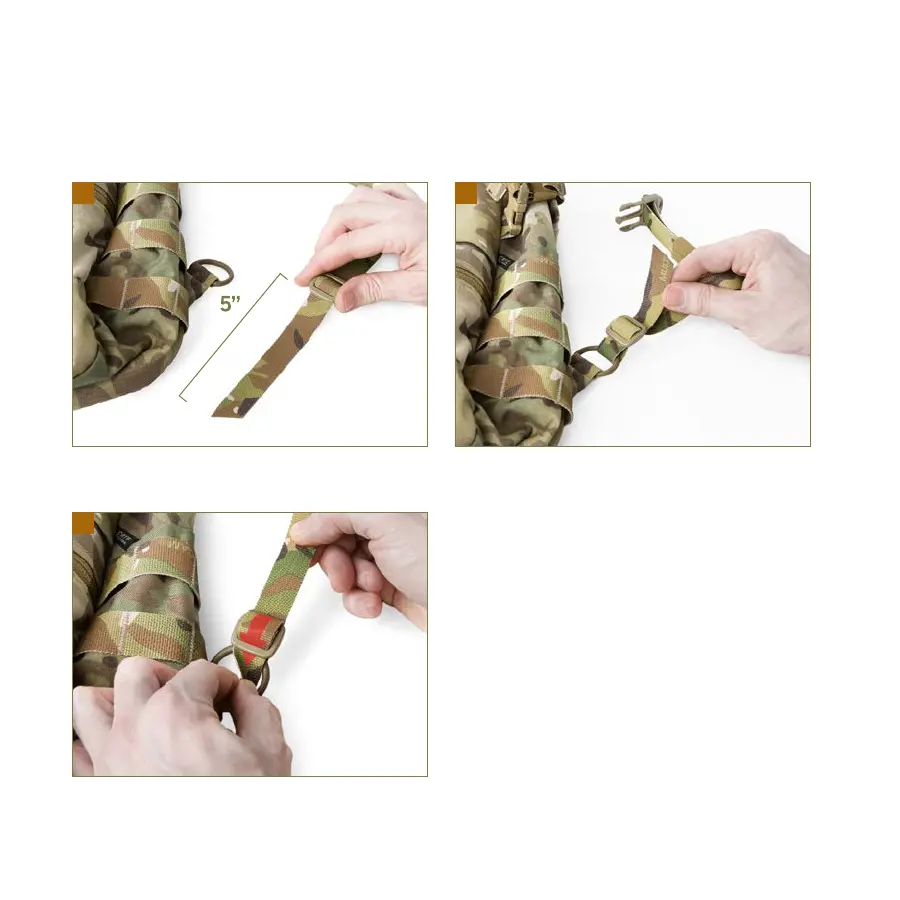 Ensure the tri-glide on the ADJUSTMENT STRAP is approximately 5”