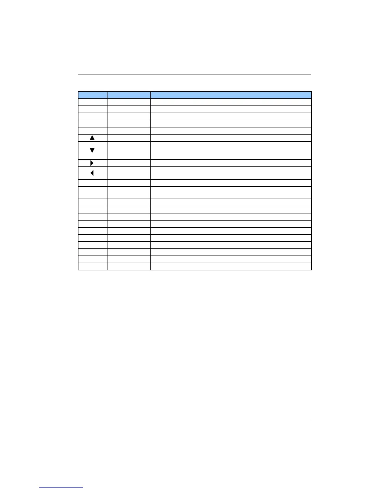 Table 15: Keypad key functions.
