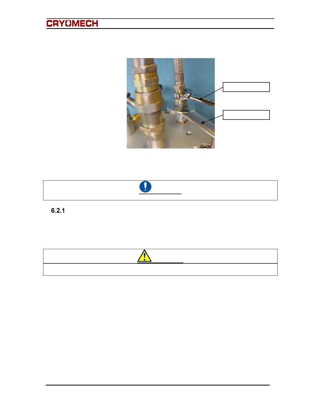 Figure 6-5: Connecting the external reservoir’s flex line to the cold head