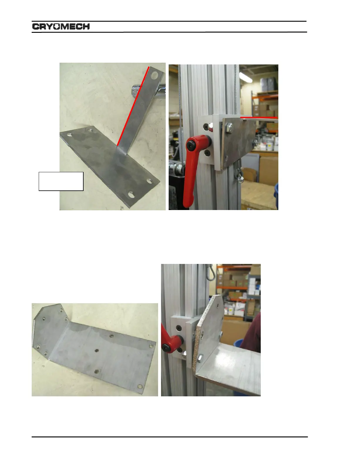 11) Install the Reliquefier top support bracket using (4) 5/16”-18 x 1” mounting bolts and nuts as shown in