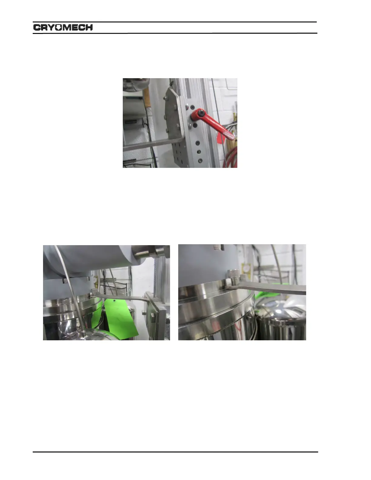 7) While holding the Reliquefier, lower the upper bracket so that the hole on the upper bracket aligns