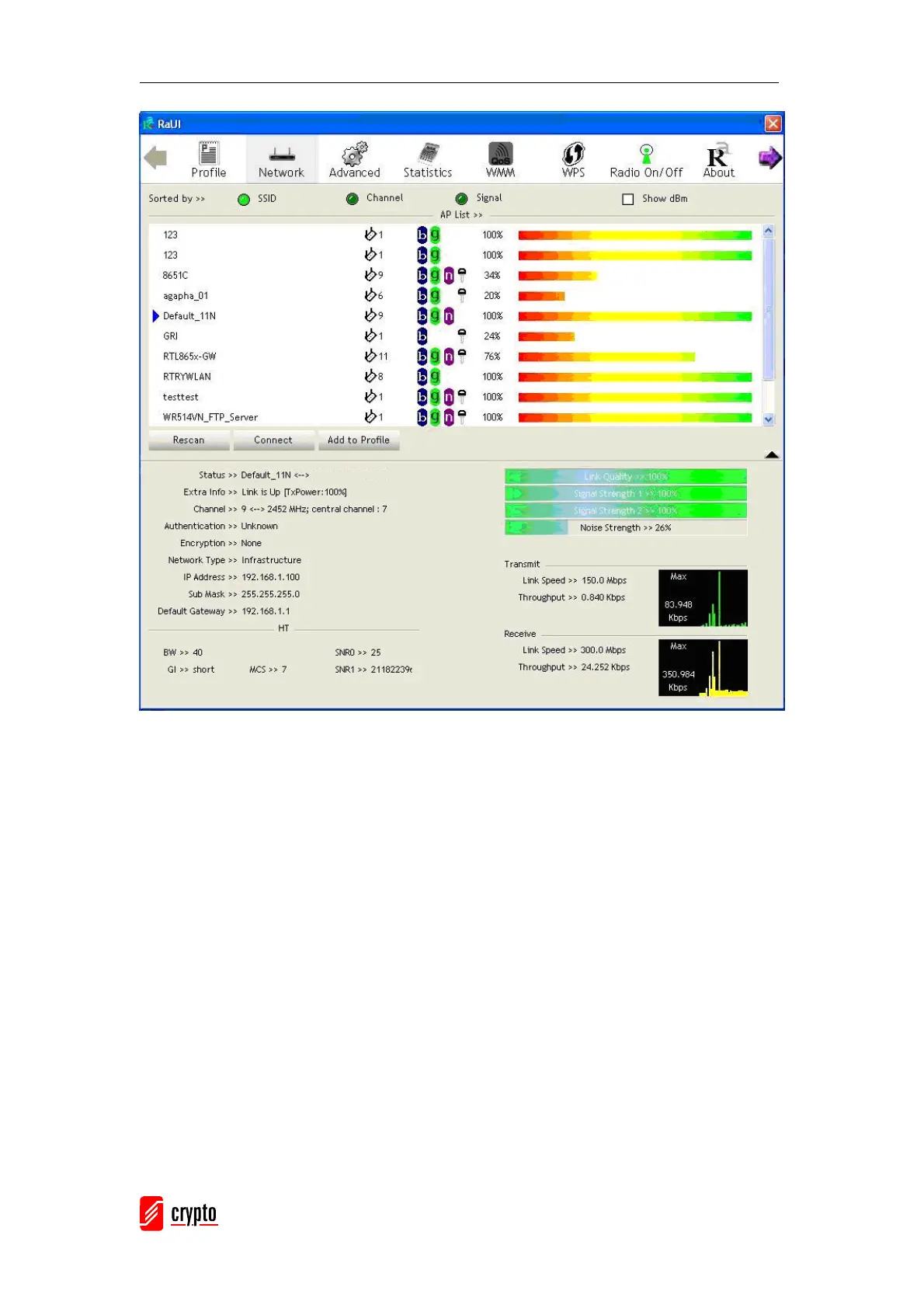 When starting RaUI, the system will connect to the AP with the best signal strength without