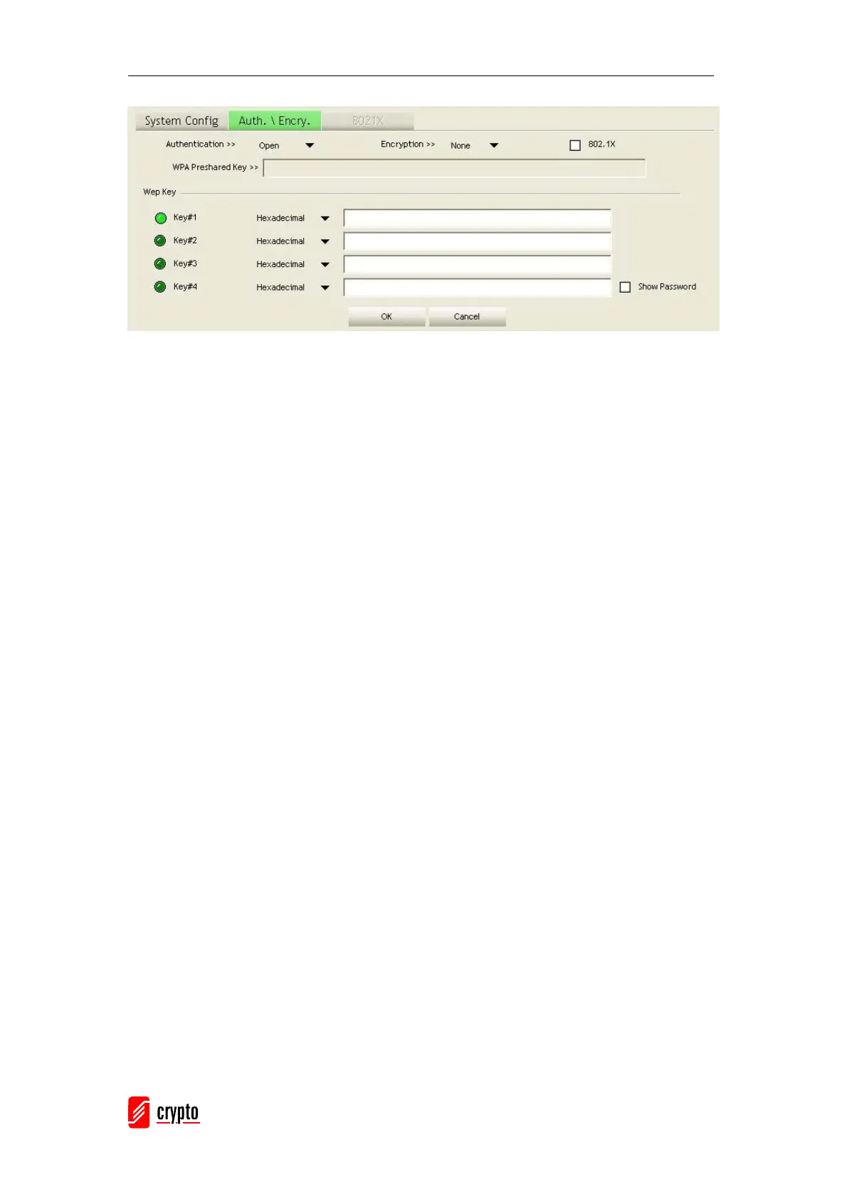 Encryption Type: For open and shared authentication mode, the selection of encryption type