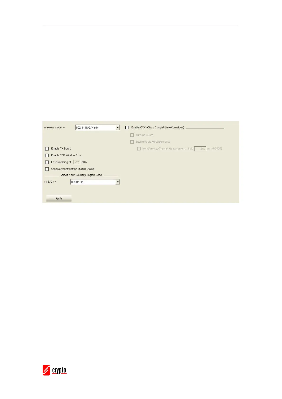adapter; 802.11B/G/N mix selection item only exists for B/G/N adapter; 802.11B/G/N mix