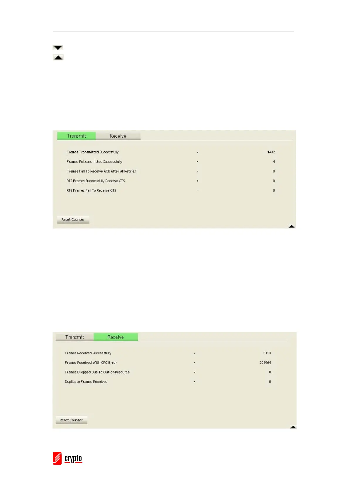 Statistics page displays the detail counter information based on 802.11 MIB counters. This