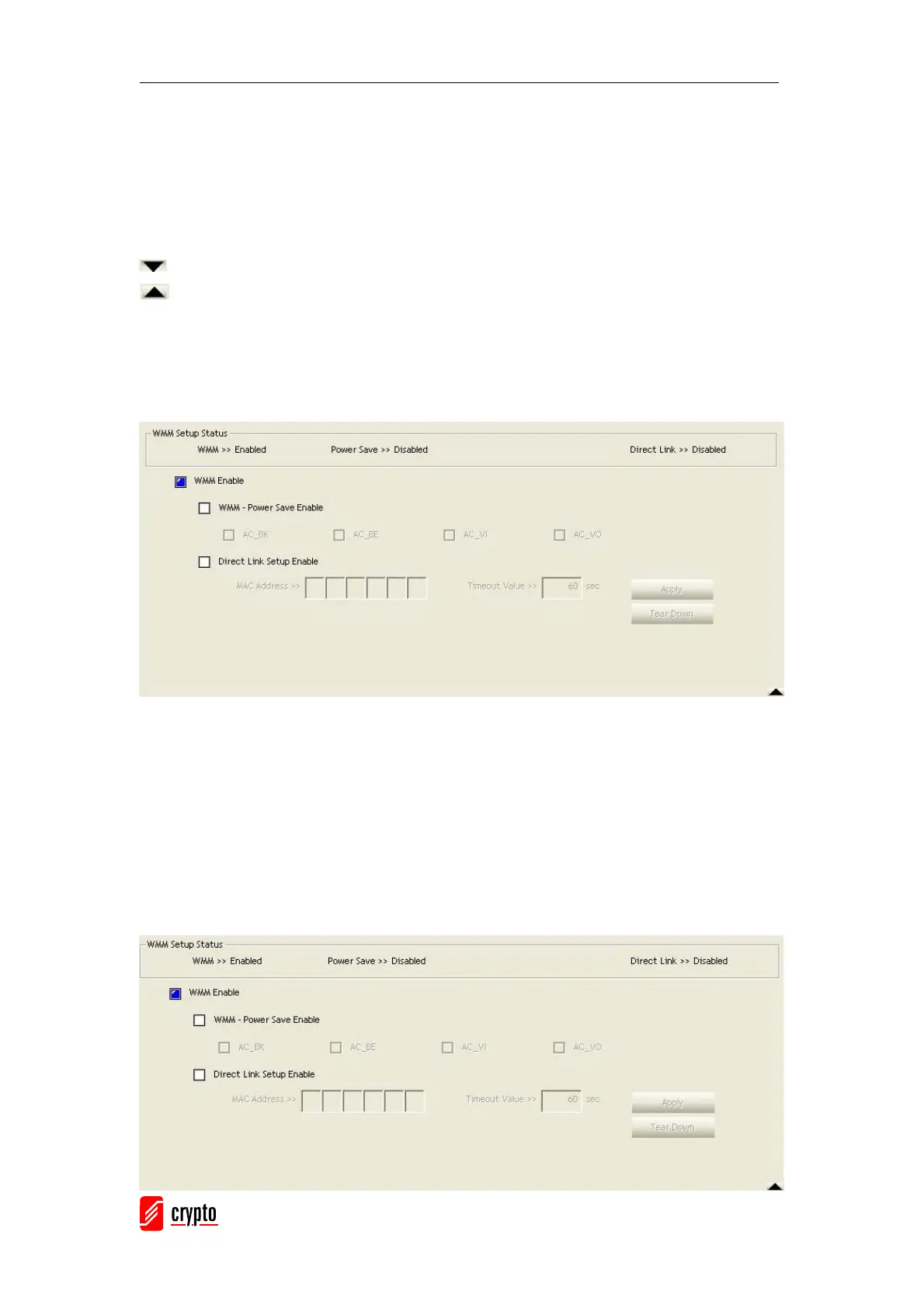 WMM function involves “WMM Enable”, “WMM-Power Save Enable” and “DLS Setup”.