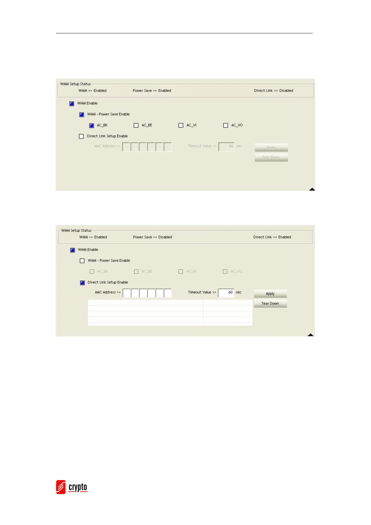 Please select which ACs you want to enable. The setting of enabling WMM-Power Save is