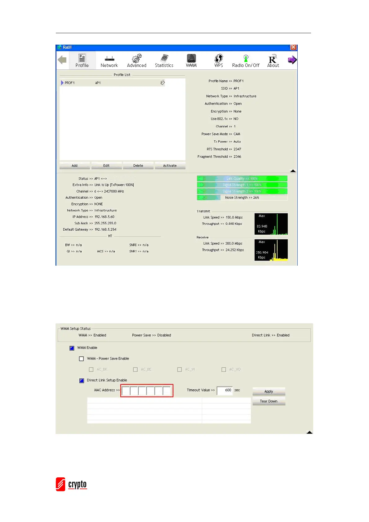 Fill in the blanks of Direct Link with MAC address of STA. The STA must conform to the