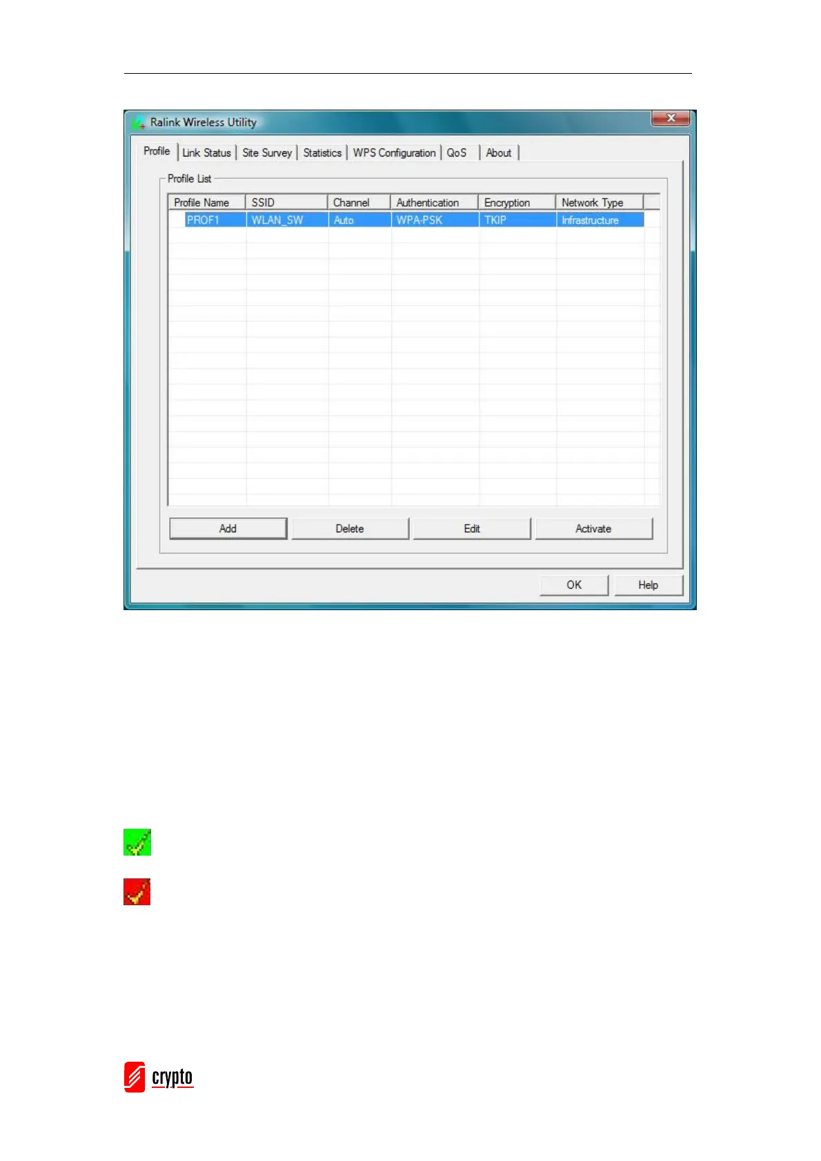 Activate Button: Click”Activate” to connect the selected profile. When a profile is