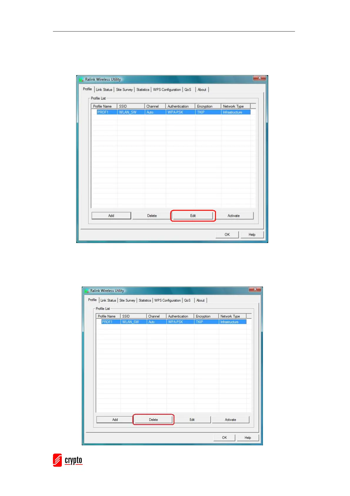 You can delete a profile by selecting an existing profile then clicking the “Delete” button on