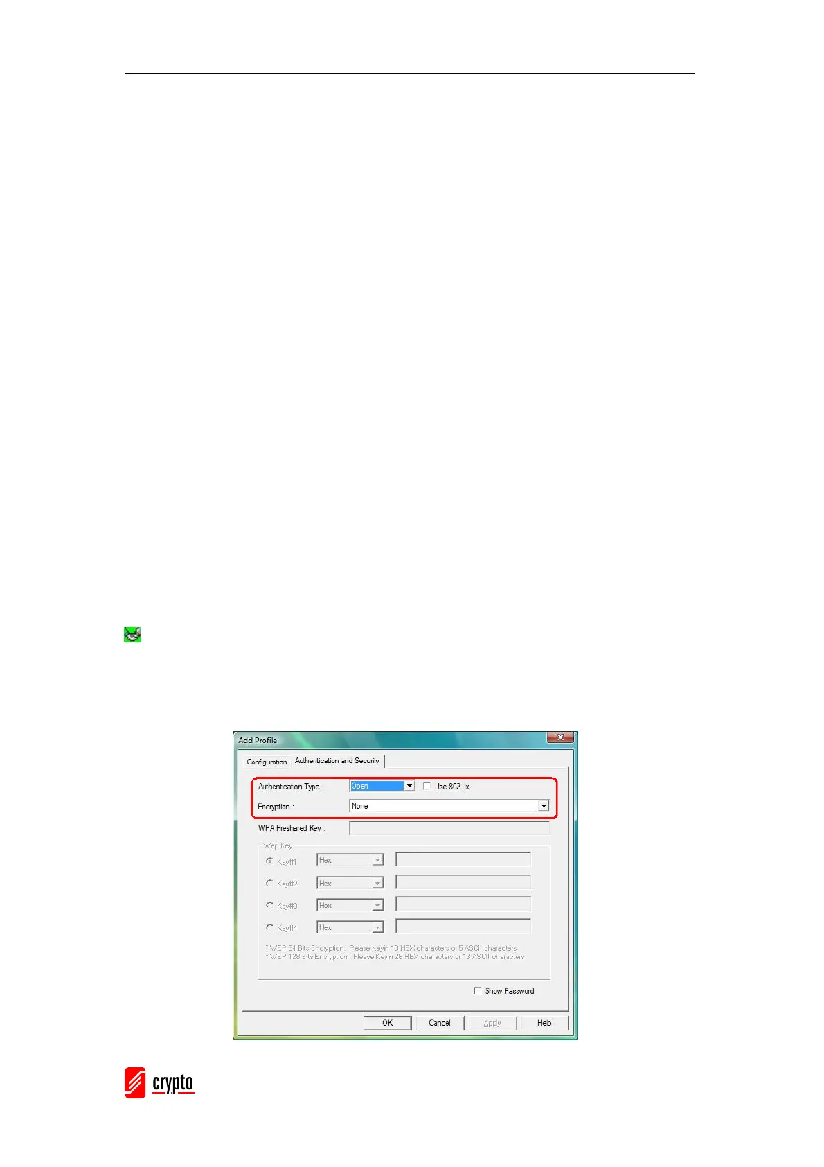 (3) If the intended network has encryption other than “Not Use”, Raconfig will bring up the