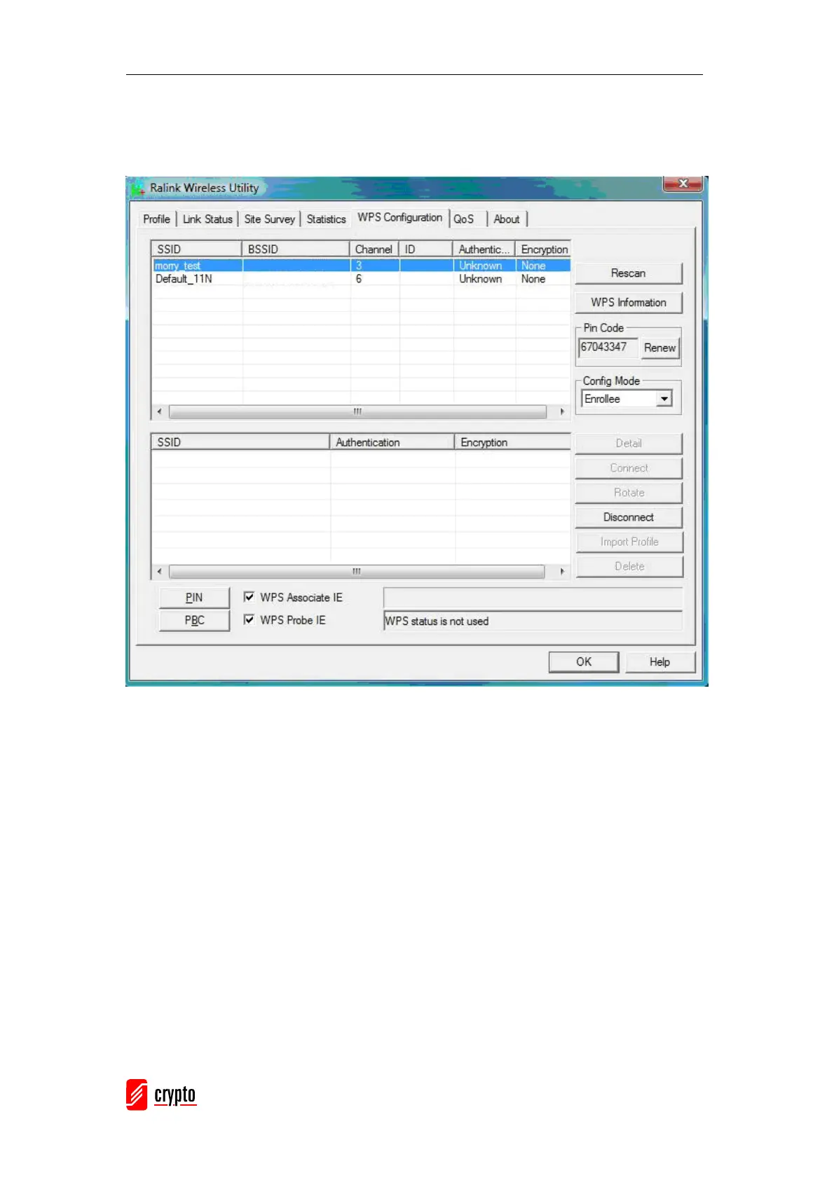 WPS AP Information: Clicking the WPS information” button brings up the WPS capable AP