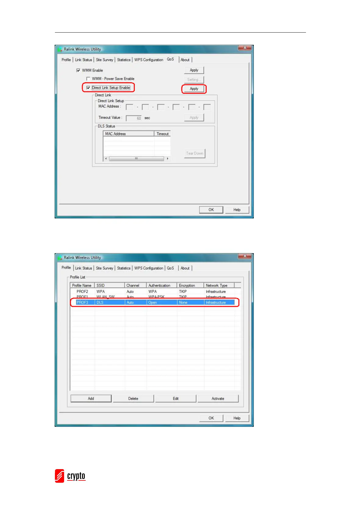 Fill in the blanks of Direct Link with MAC Address of STA. The STA must conform to two