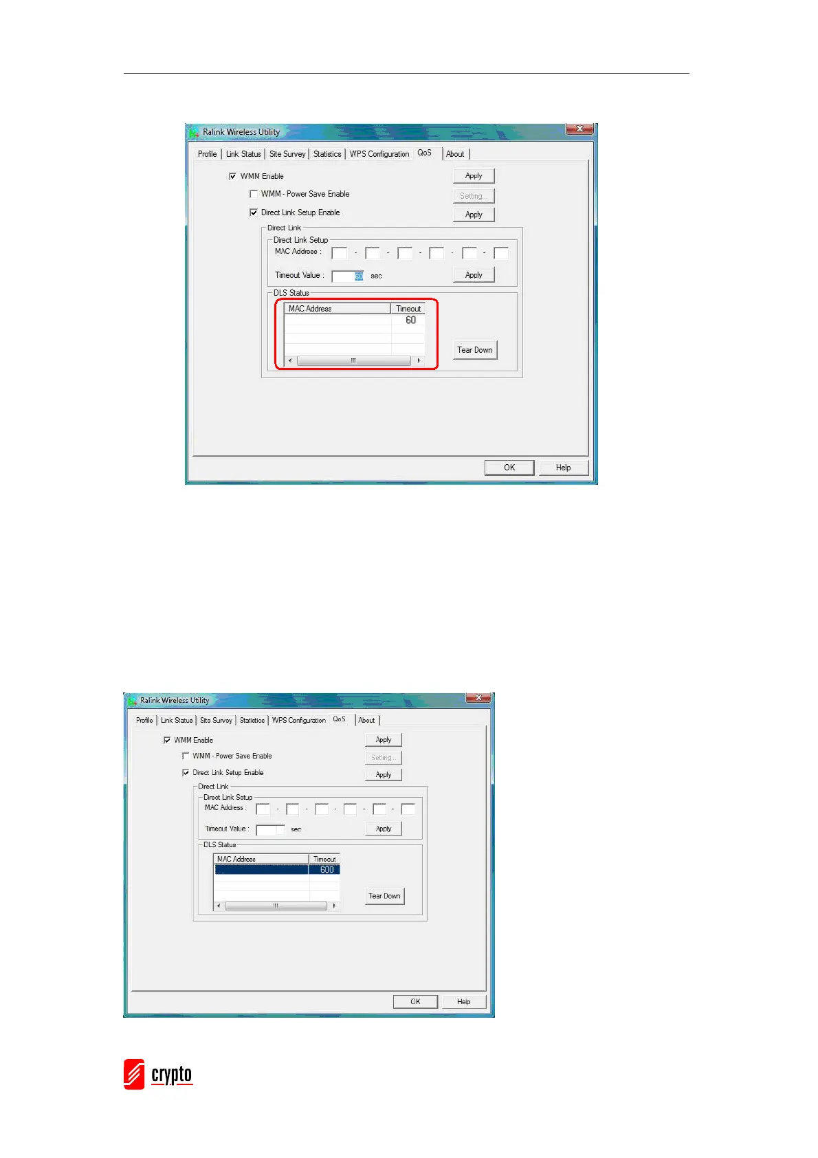 Display the values of “DLS Status” to “Direct Link Setup” as follows: