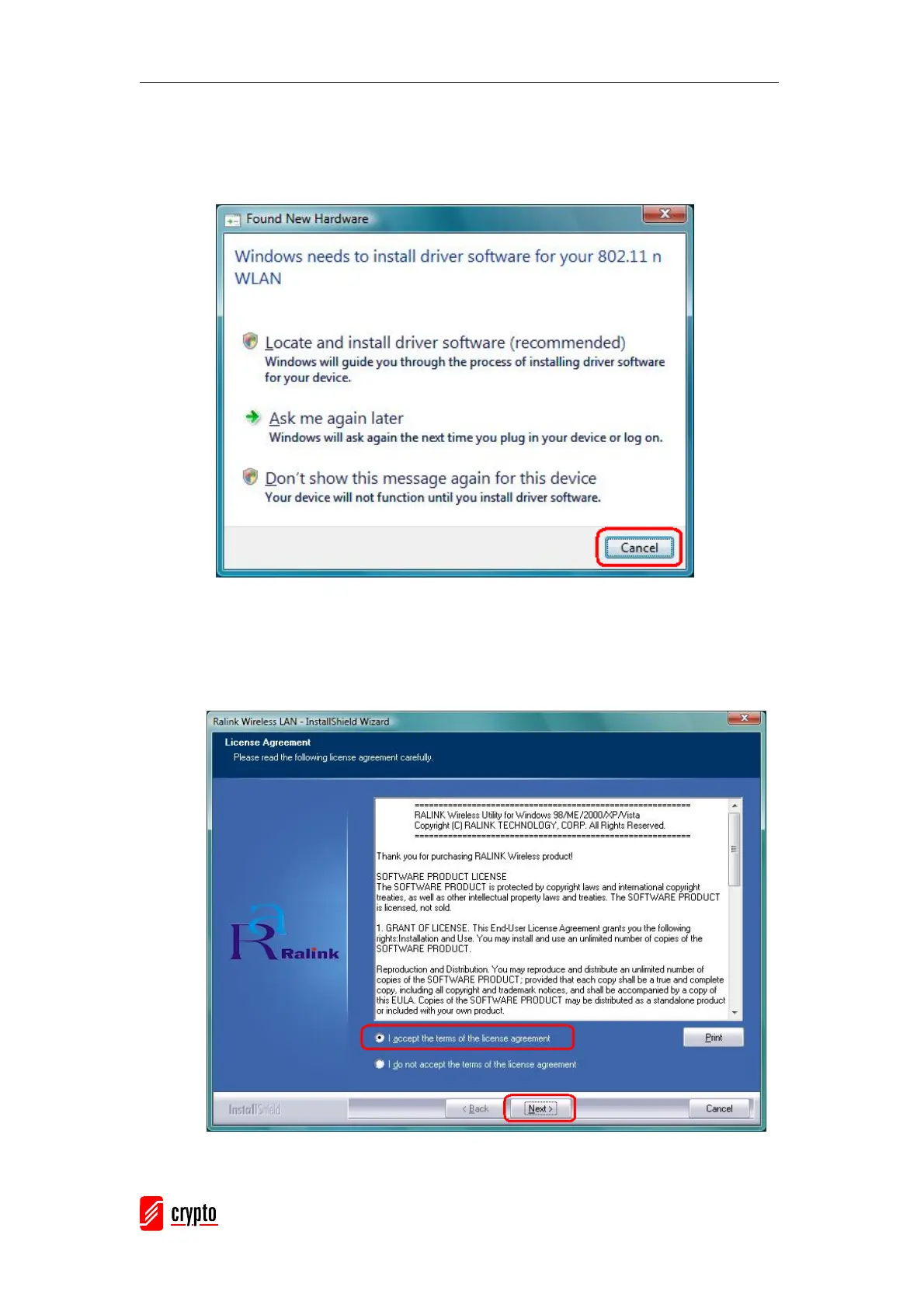 The Found New Hardware Wizard below will appear after the USB adapter is installed.