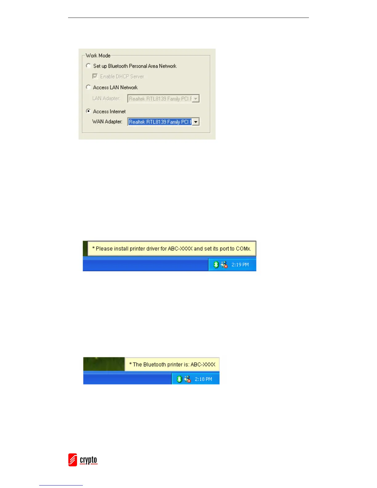 The Bluetooth Printer Profile (HCRP) allows you to connect to a Bluetooth enabled