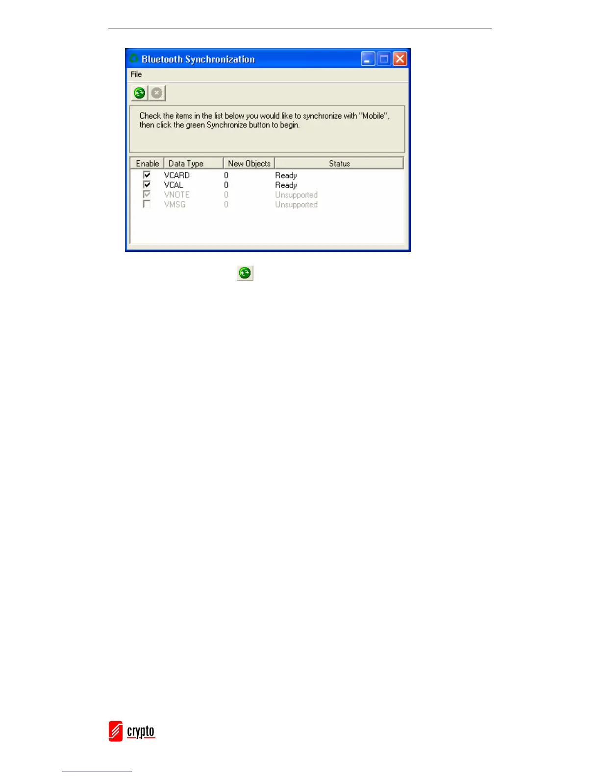 You can start synchronization from MS Outlook using the Bluetooth Add-In menus