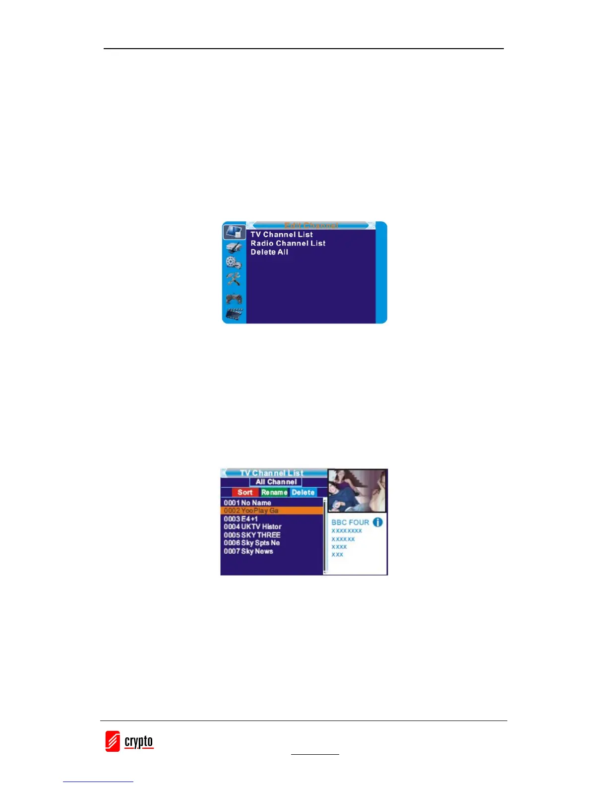 NOTE: Basically, the operation of "Radio Channel List" is the same as "TV Channel List", but