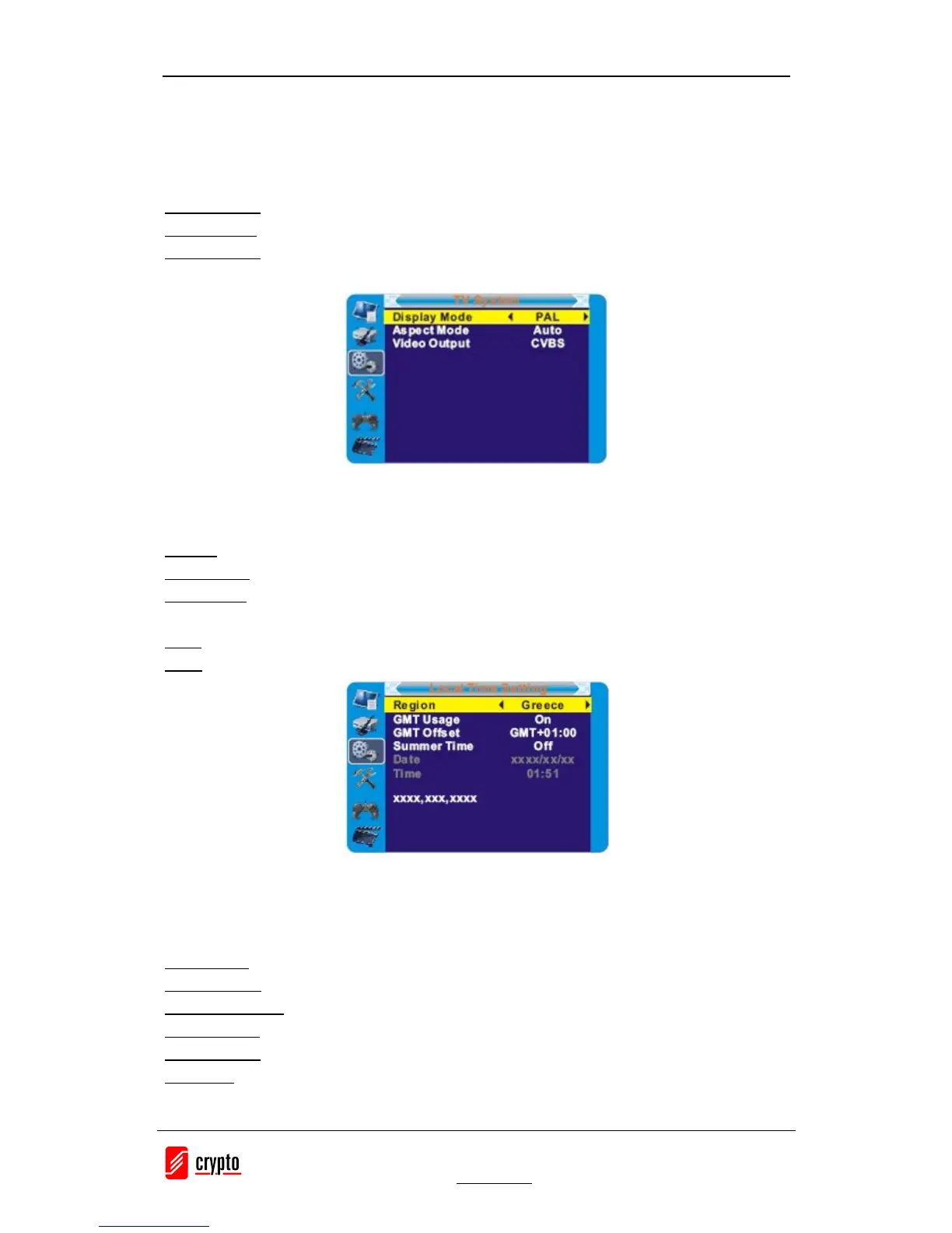 Date: "Date" and "Time" menus are valid only when selected "Off" in GMT Usage menu.