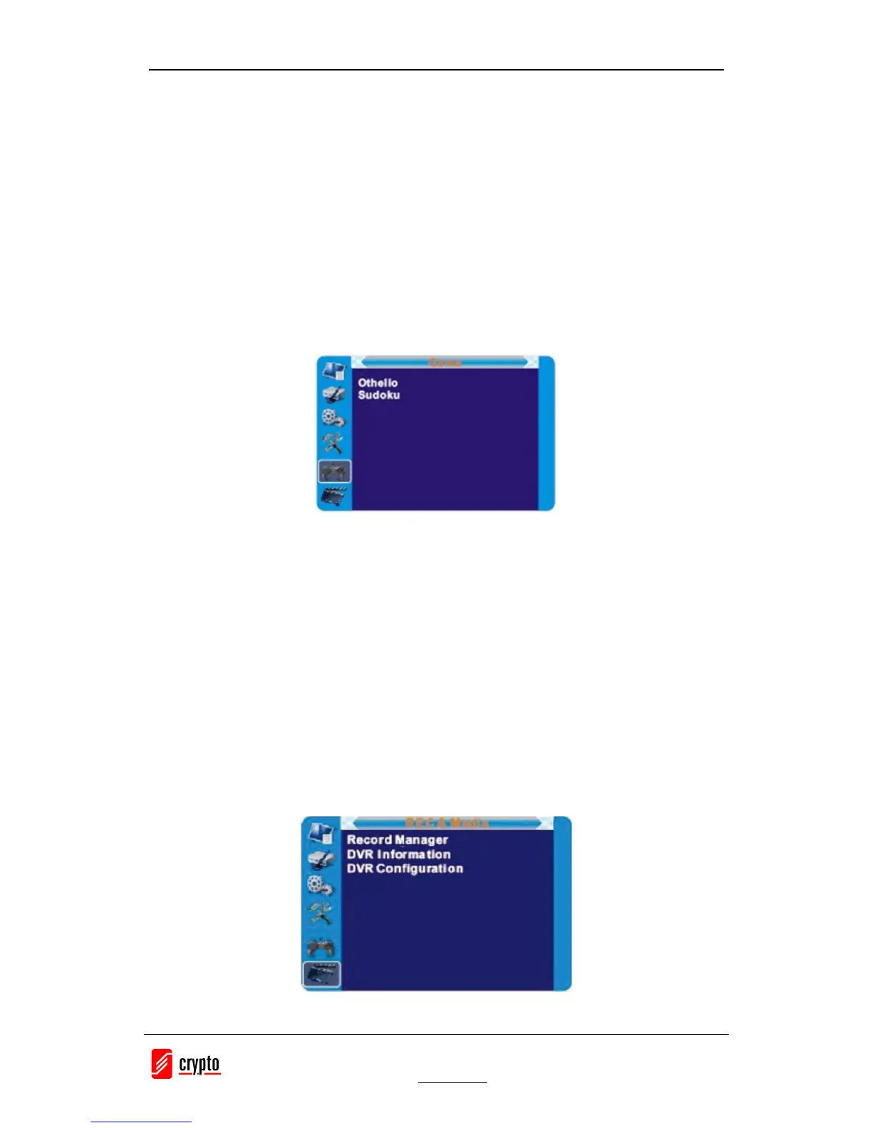 This menu allows you to play games.