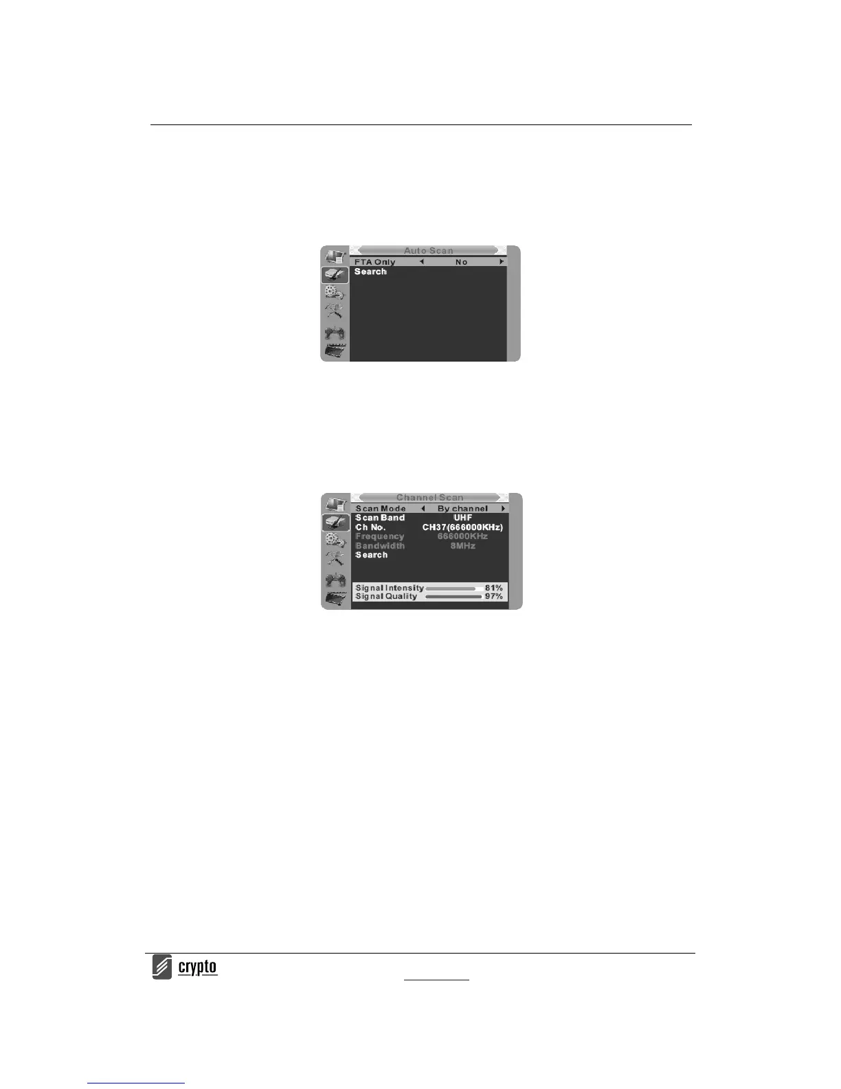 2. Press cursor button to set Scan mode, Scan Band, Channel No., Frequency and