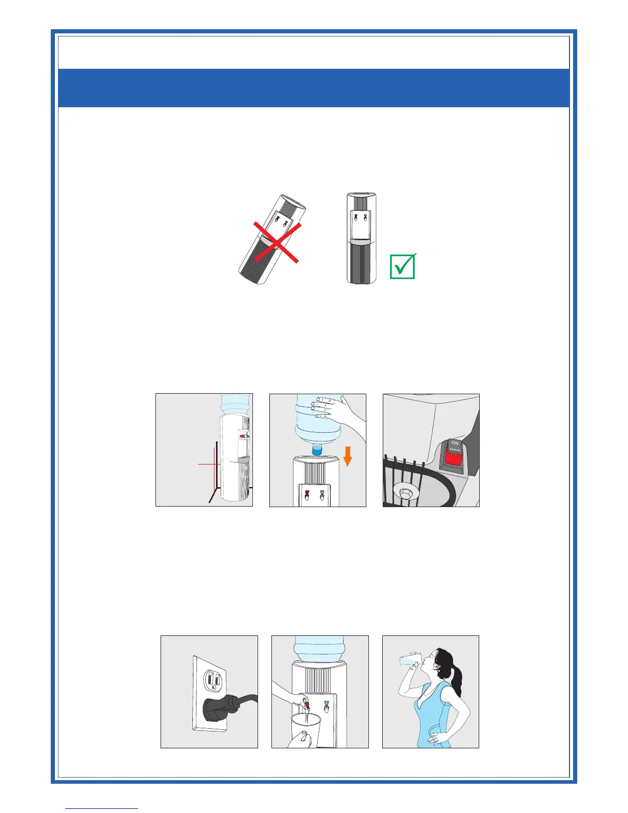 1. Place the water cooler on a flat level surface in a cool shaded location near a grounded wall