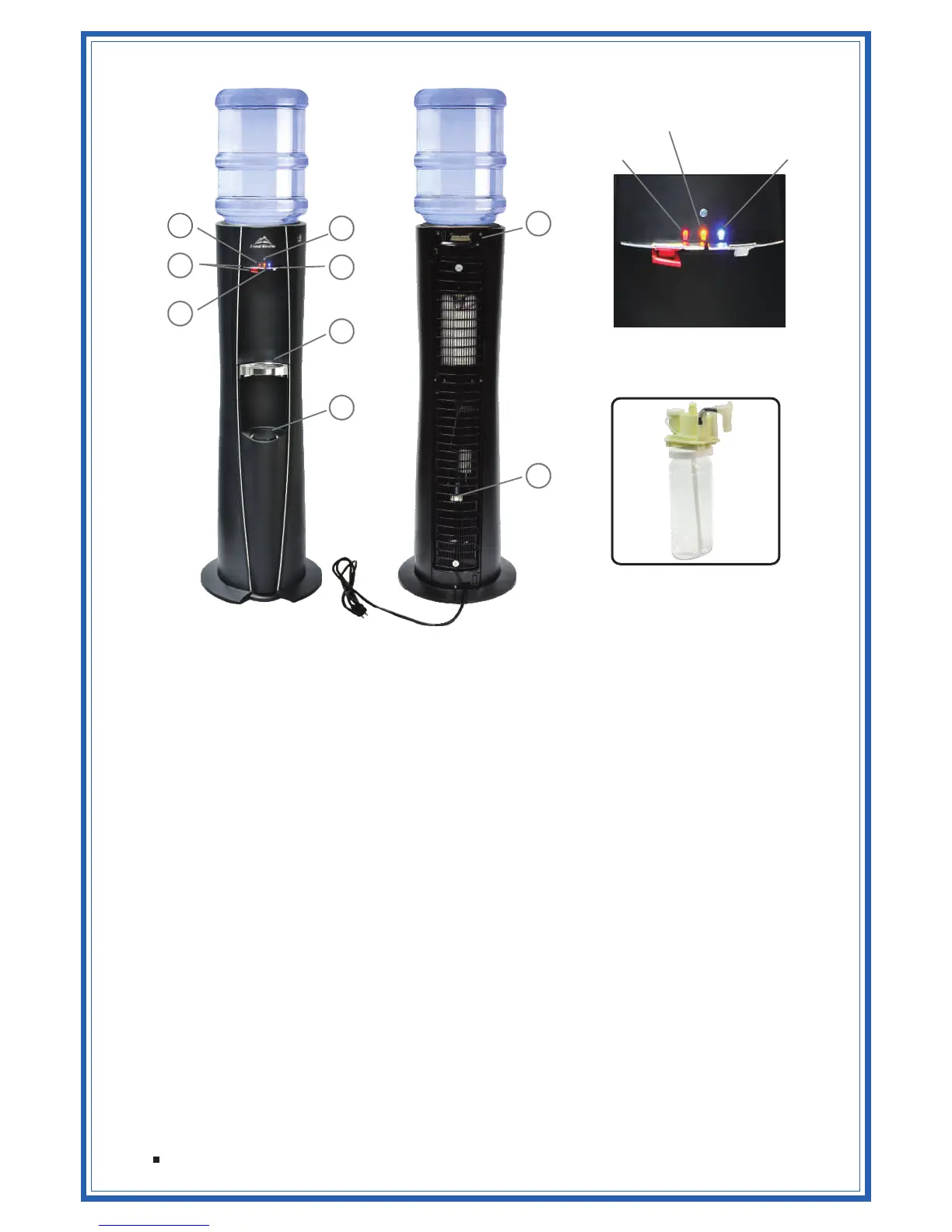 Nightlight ( – On when cooler is connected to power)Blue