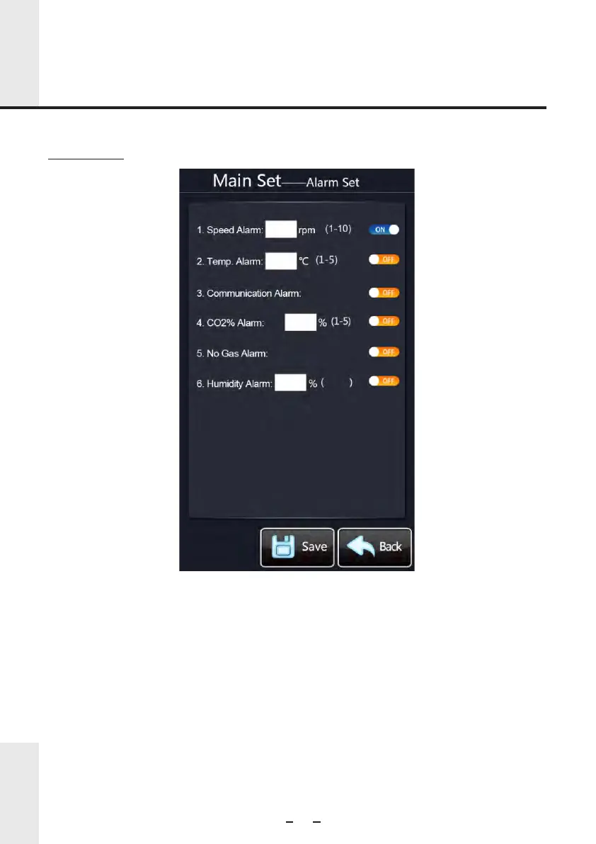 than the absolute value of the alarm value, then the instrument will stop running and the