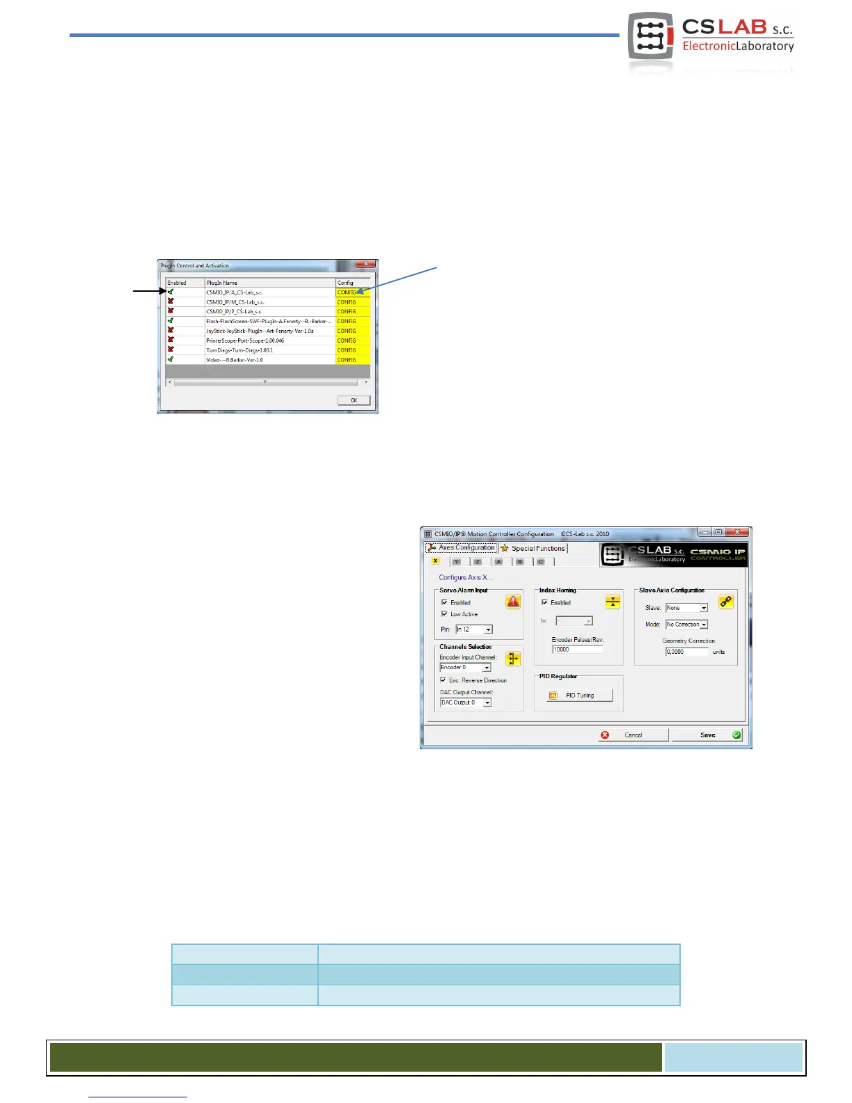 The configuration window of plugin is activated by „ConfigConfig Plugins” menu position, click