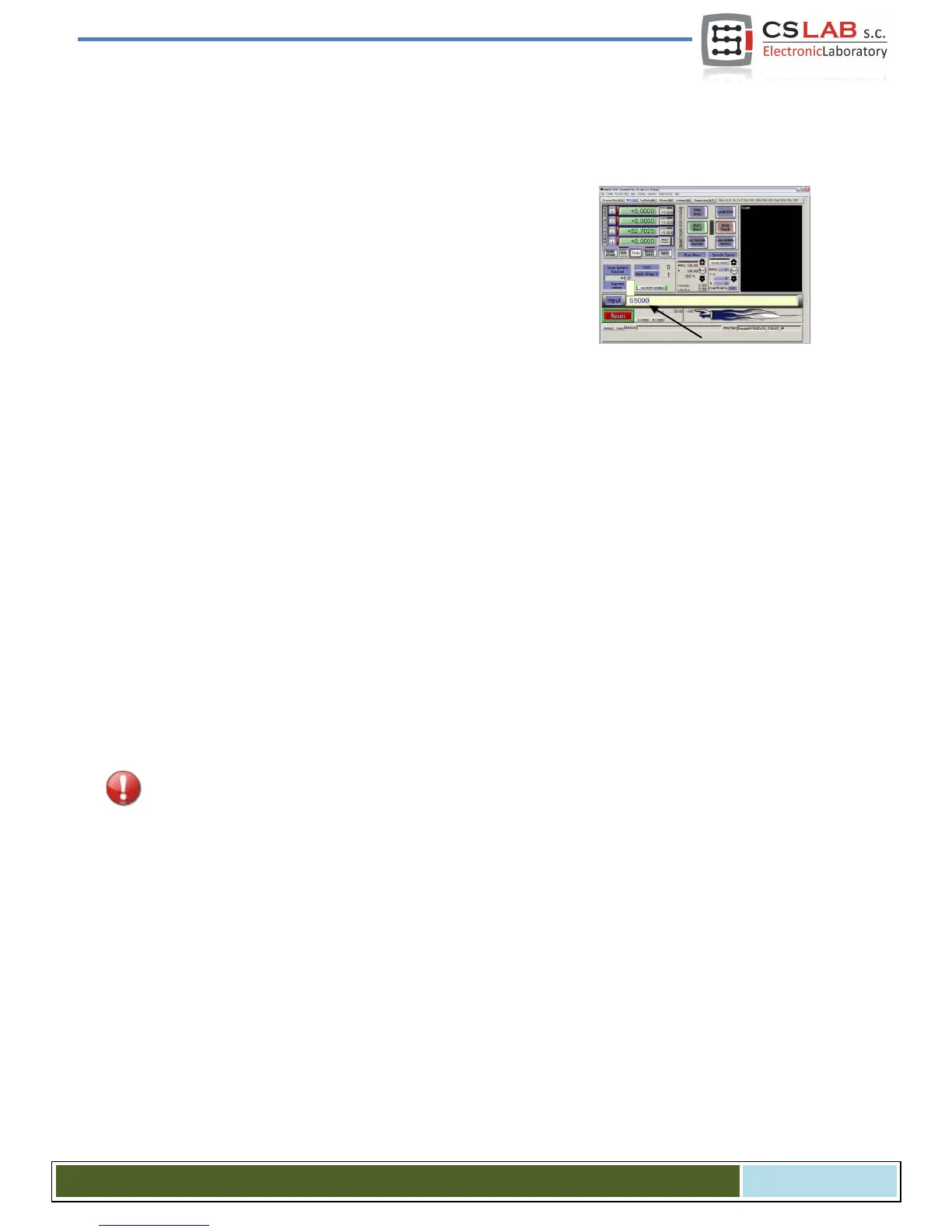 • Enter M5 command (stopping) and approve with <enter>. The spindle should stop.