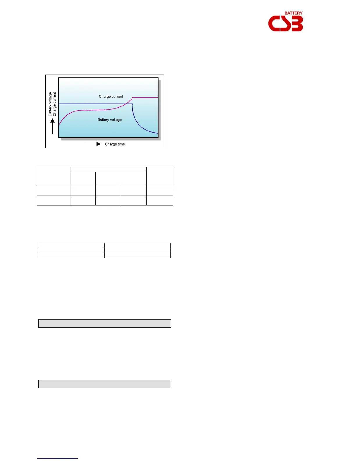 Table 4 : Charge voltage and maximum charge current.