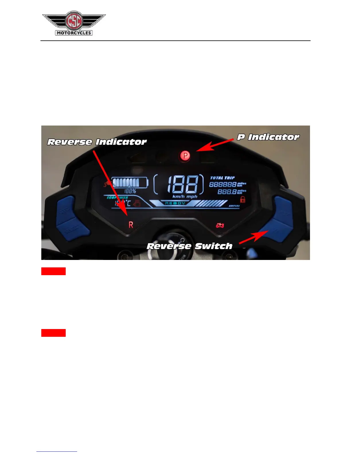 Warning!Donotattempttoridethemotorcycleinreverse.Thisfeatureisonlyincludedasabackup