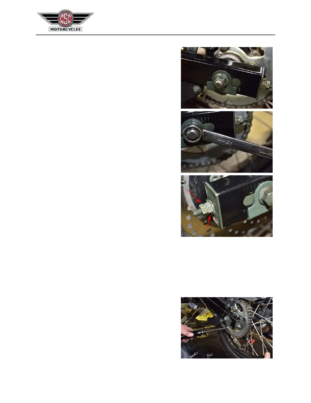decreasechainslack,tightentheinnernutsasrequiredonbothsidesoftheswingarmtomovetheaxle